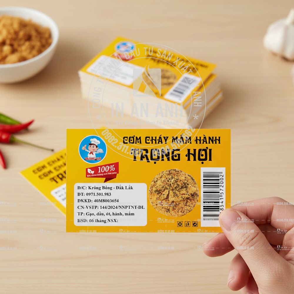 - In full-color (CMYK) có chi phí cao hơn in 1–2 màu. Các hiệu ứng như ép nhũ, cán UV, in nổi làm tăng đáng kể giá in tem nhãn mác.