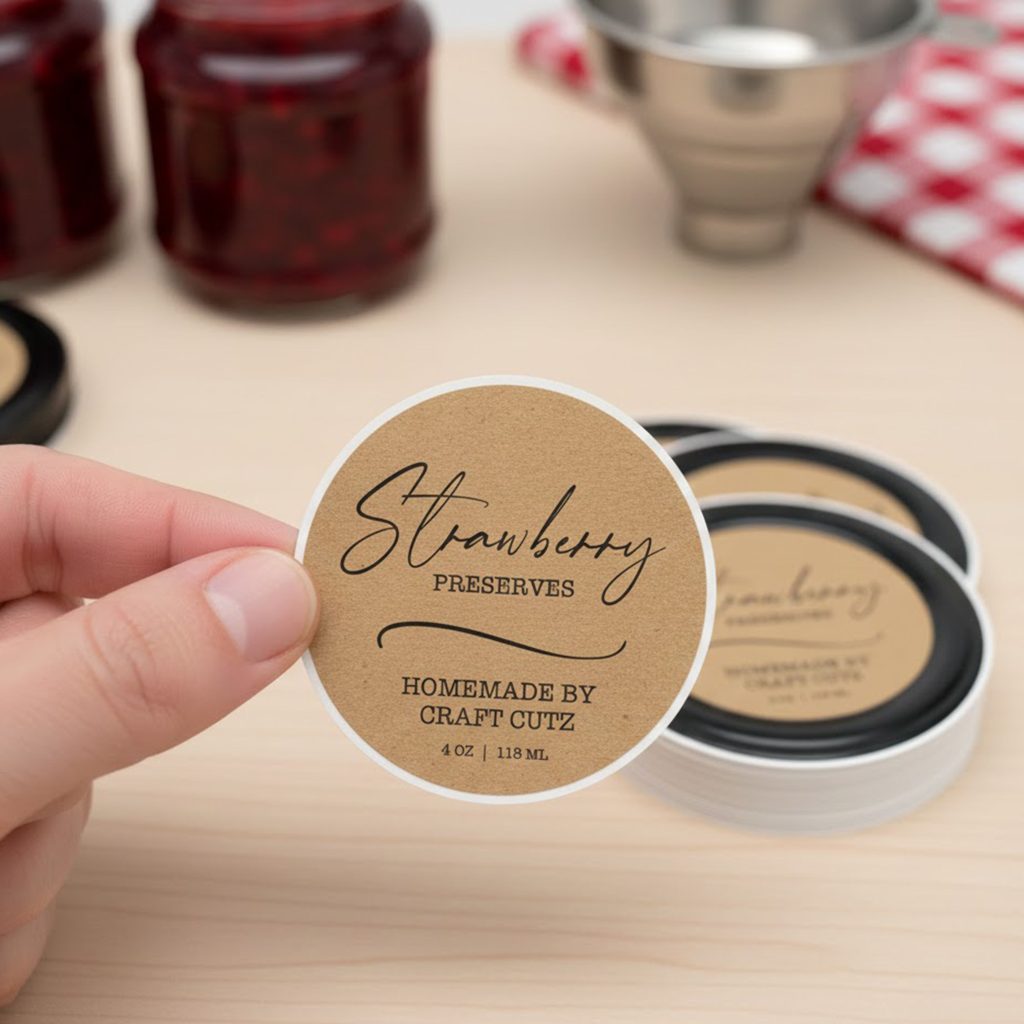 - Thực phẩm Sạch, Nông sản Hữu cơ & Đặc sản: Mật ong, mứt, hạt ngũ cốc, cà phê rang xay, trà thảo mộc. Tem Kraft tạo cảm giác “từ trang trại đến bàn ăn”, đề cao tính nguyên bản và an toàn.